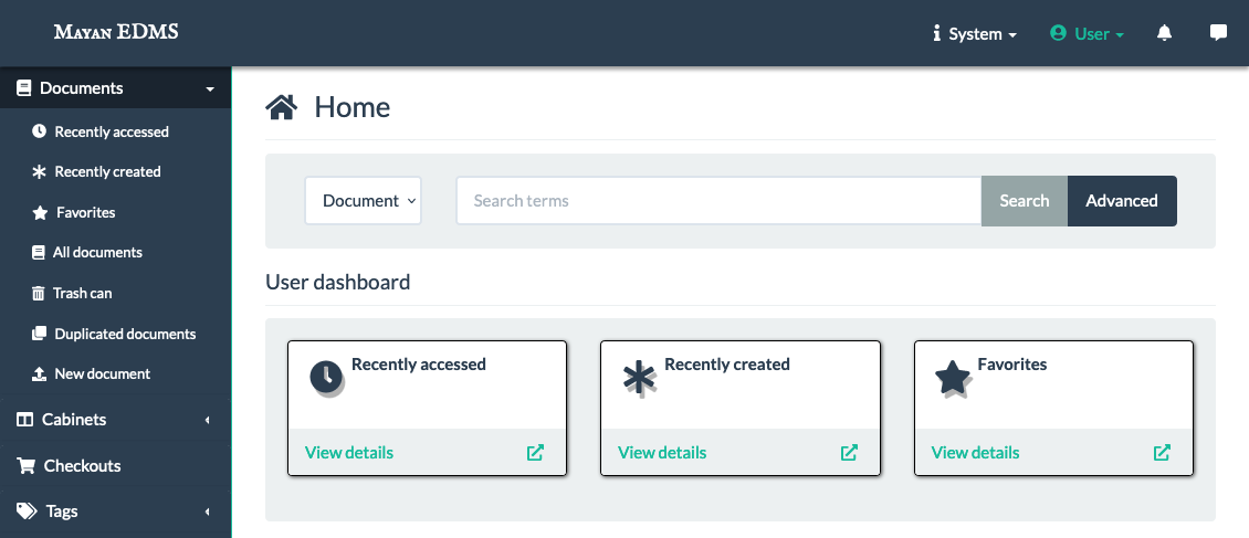 The homepage for a Mayan EDMS instance
